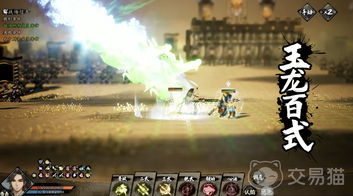 第二战时,叔叔会施展玉龙绝和关山战策,防御能力大幅提升。他一进场就自带 6 层玉龙决,很难消除。而且玉龙决4 级效果玉龙化变特别麻烦,能把叔叔身上的负面效果直接转移到玩家身上。