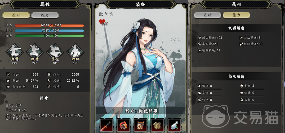 欧阳雪:会一直陪伴玩家左右,输出能力是很扎实的,好感度可以直接拉到100。可以作为优先培养的对象,通过补充缺失的轻功就能有效强化输出的潜力。