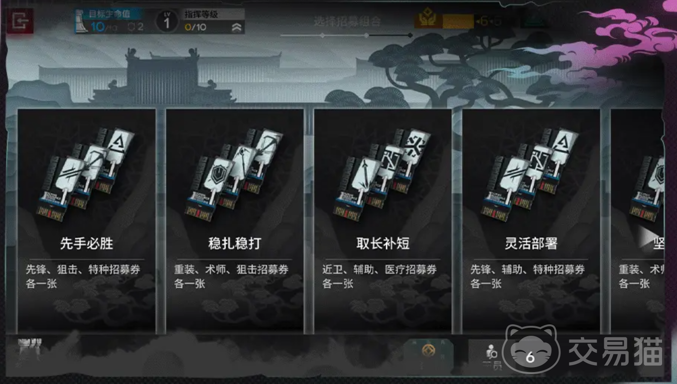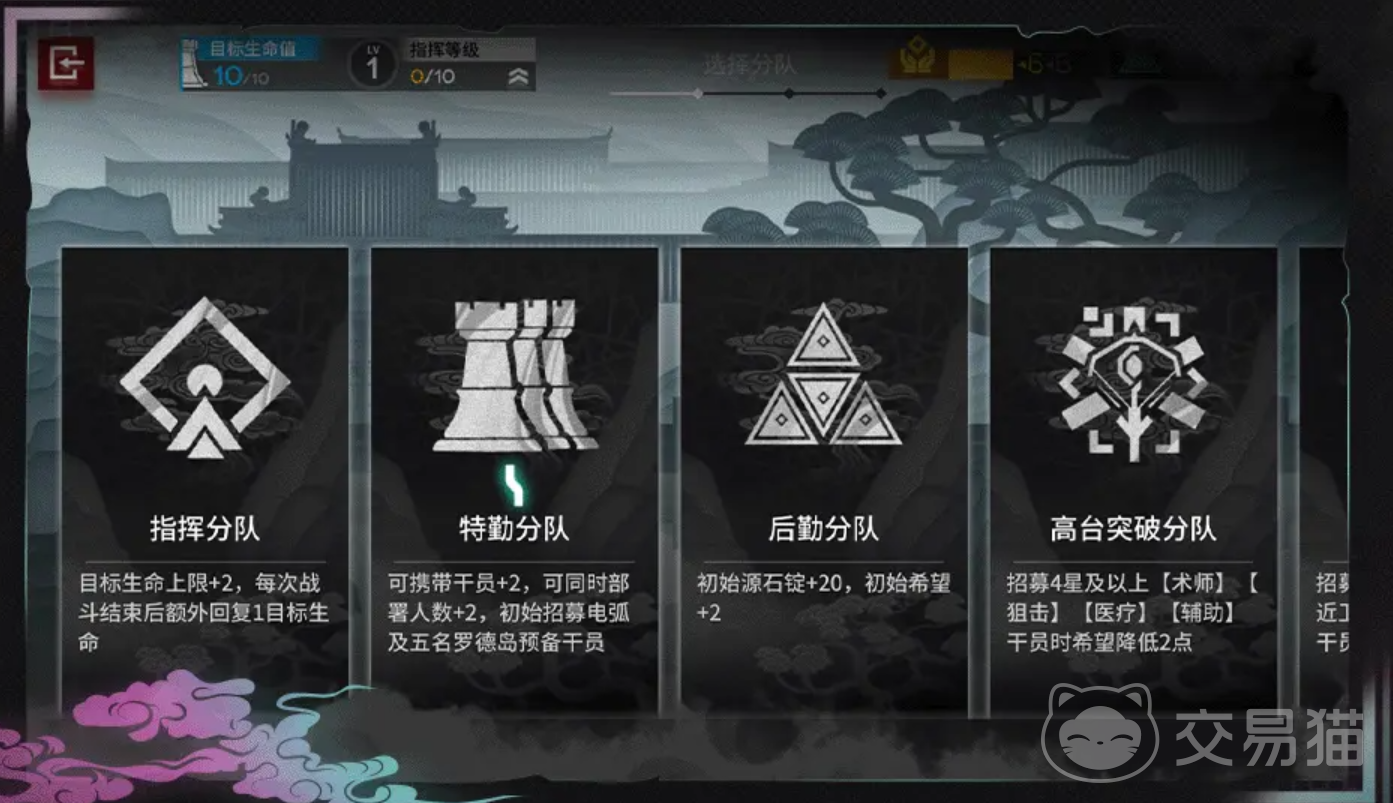 分队和招募:探险开始时,需要选择本次的探险分队,不同的分队会提供不同的战术效果,有丰富的小队种类可以选择,选择心仪的招募组进行初始招募,可决定本次跟随自己前往探险的第一批干员,探险过程中会有很多机会,可以获得不同职业的招募券,使用招募券可以自主扩充招募队伍,临时招募也是另一种选择。