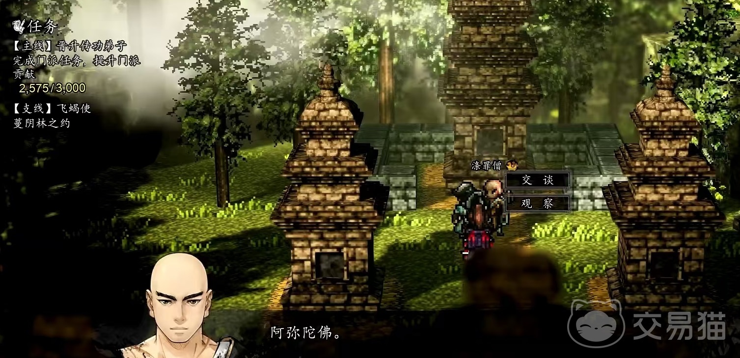 在邀请冷鹰完成前置之后,需要大家通过完成任务提升和涤罪僧的好感度,需要达到60才可以将其邀请到队伍中。主要提升好感度的都是一些支线,例如完成甘泉苦水支线,在一线天支线达成完美结局,或者是去帮助孔亮等,这些任务完成的越多越完美,增加的好感度就越高。然后带着冷鹰前往少林寺的塔林在这里找到的地方和他对话,如果好感度达标,那么就可以成功招募了。之所以要带着冷鹰,是因为队伍中有冷鹰会额外增加好感度,更容易达到招募的条件。