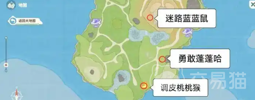 蓝蓝鼠除了上面两个地点,在溪柳小岛也可以来进行捕捉,而小火雀还有门牙兔这个宠物只有在树叶小岛才可以捕捉,大耳象在树叶小岛以及溪柳小岛可以捕捉,还有卷卷棉,可以在树叶小岛以及家园岛、溪流小岛和松鸣岛捕捉,黑梦棉可以在树野小岛还有松鸣小岛捕捉,大家都可以在这个小岛上来捕捉各种各样的宠物。