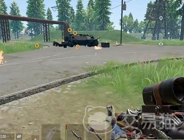 坦克爆炸后生成半径5米的火焰区,持续5分钟,触碰会持续掉血。等待期间可原地蹲守防御其他玩家偷袭。火焰熄灭后靠近残骸,先开启3个军火箱(内含8倍镜、汤姆逊冲锋枪等随机配件),再用铁镐敲碎坦克残骸获得资源:金属碎片、高级金属等等。这些材料是前期制造护甲的核心资源。