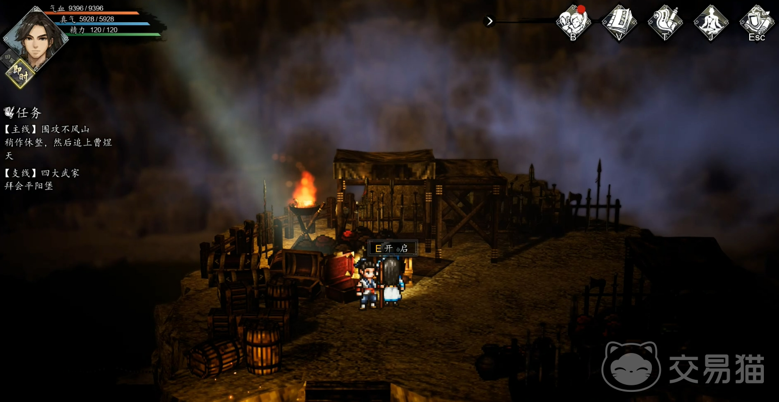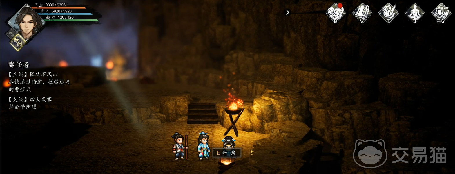 准备工作完成后,即可启程前往不风山。到达山脚后,将触发连续的战斗与探索内容。整个不风山区域藏有多个宝箱与关键物资,合理探索将大大增强后续战斗的资源储备。第一个宝箱位于右下方的岔路,开启后可获得【鸣鸿刀·精良图纸】。继续向下行进会触发一段剧情,选择“跟上去看看”并随后选择“饶他一命”,可获知一个隐藏的信息,同时获得【玄焰身法】与二转血气丹。