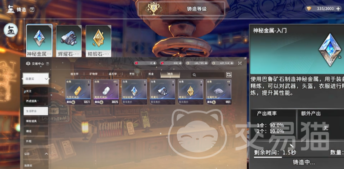 如果玩家能够挖到足够的矿石,那接下来就可以来到工匠协会的2楼,马上找到铸造导师。在材料兑换这里,马上就可以通过换取的方法获得助熔金。基本上每天上线都能够得到600个,总之一开始通过这些方法,简直就是供不应求。