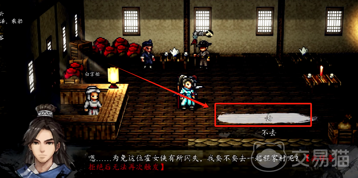 关键的支线任务节点,需要玩家前往到樊城的客栈内,寻找到支线任务烟霞剑客,在剧情任务触发之后,直接选择“去”,就能够获得霍长青的好感度十点。