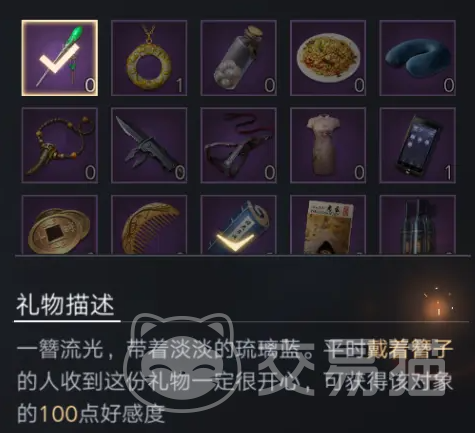 各种各样的传统礼物都是霍秀秀所喜欢的,这也是拉近彼此关系的途径。其中就有一个簪子,一看就很漂亮,如果能够送给霍秀秀,那自然就能有效提升彼此之间的关系。最终就可以顺利的通过彼此之间就可以携手在游戏中遨游。