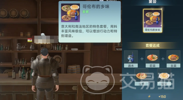 玩家再来到意大利时,如果看到酒吧老板。就可以在这里选择多点酒,如果能够把累计的数量达到一定的程度,接着就可以获取哥伦布的乡味。从这里就可以看到,在获取套餐时相对还是比较简单的。