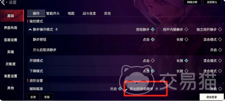 在移动操作方面,可以把其设为按钮静步模式,并且要开启开火后取消静步功能,这样做的目的就是为了有效地防止因为误操作而导致自己的位置暴露在敌人面前,同时为了让玩家的操作更加便捷和精准,还可以启用辅助瞄准以及快速攀爬功能。