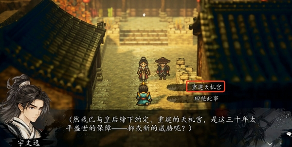在主线“天机宫”一章里,商颂作为天机宫的传承者出现,并有一段较为关键的剧情戏份。剧情到烈焰试炼与叶飞战斗之前,商颂会加入场景,甚至能进行对战或协助,但她始终只是剧情NPC,不会像卫霍、司马铃那样真正入队且留在队伍中自由使用。