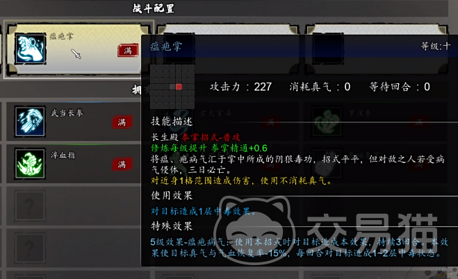 这些拳法只适合前期去使用,等到中期或者后期的时候,拳法的能力就会稍有不足,可以选择用绵掌搭配瘟庖掌,这样不断能给对手带来巨大的攻击,同时还可以削弱对方的回血能力,中期也可以使用太极拳,这是武当门派的一门绝学,后期还可以搭配抗龙游回组成较为优秀的连招,是输出控制能力都比较优秀的一种拳法。