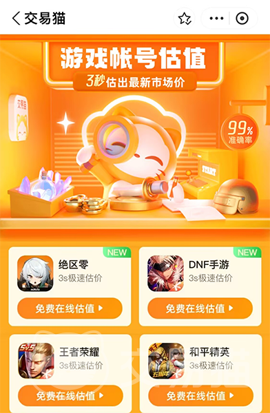 估值服务专业。交易猫结合大数据算法和平台交易记录,为卖家提供账号估值辅助系统。该系统综合账号的段位、皮肤数量、充值记录等维度,给出客观价格参考,避免偏离市场行情,提升账号出售成功率。