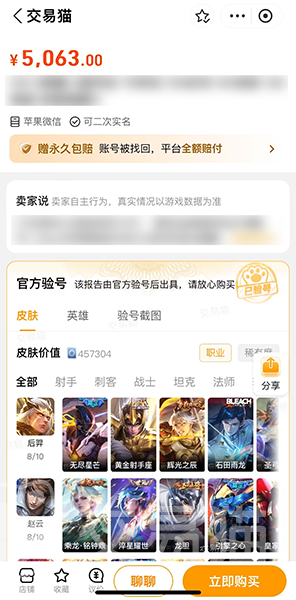 安全保障完善。交易猫要求卖家实名认证,减少虚假账号与诈骗行为。平台提供官方验号服务,确保账号信息真实,降低售后纠纷风险。同时,采用资金冻结托管机制,买家付款后资金由平台保管,确认账号无误后才放款给卖家。此外,还设有账号永久包赔服务,若账号因非买家原因被找回等,平台会介入处理并赔付。