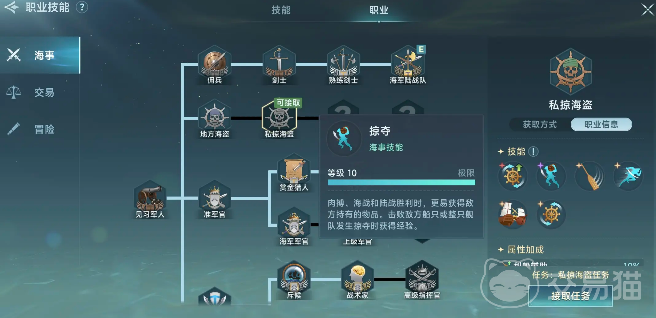 游戏中带来了经典海事、商业、冒险三大不同职业,更是细分几十种分支,让玩家到时能去自由切换,比如商人通过低买高卖积累资本,冒险家则是主动去探索遗迹获取稀有道具,军人更加依赖舰队战斗提升军衔。