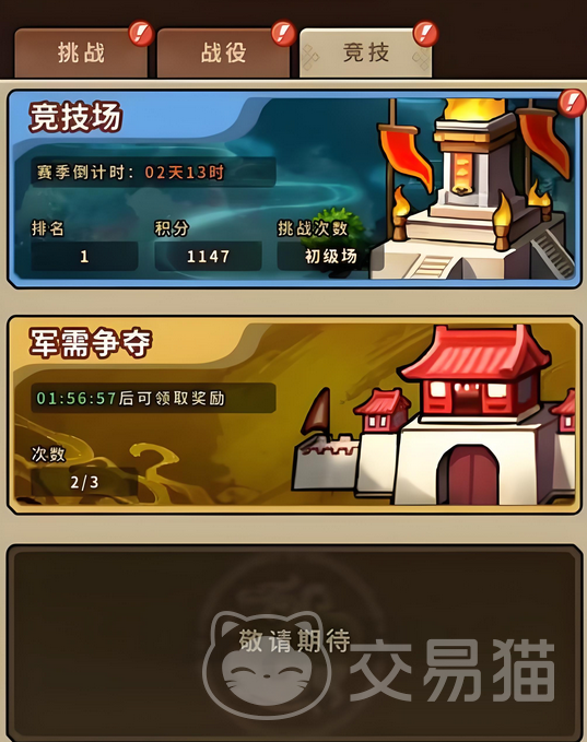 竞技场是属于游戏竞技玩法中最重要的一项,大家通过主页找到玩法后直接选择竞技,第1个选项就是竞技场。竞技场在每天的6:00~22:00开放,一共设有6个段位分组,分别是最开始的入门场,到后续的初级场、中级场、高级场、大师场一直到巅峰场。在开放时间内,玩家可以随时加入进来进行挑战,每天22点会关闭挑战,系统会根据玩家当前的组别和排名发放当天的奖励。