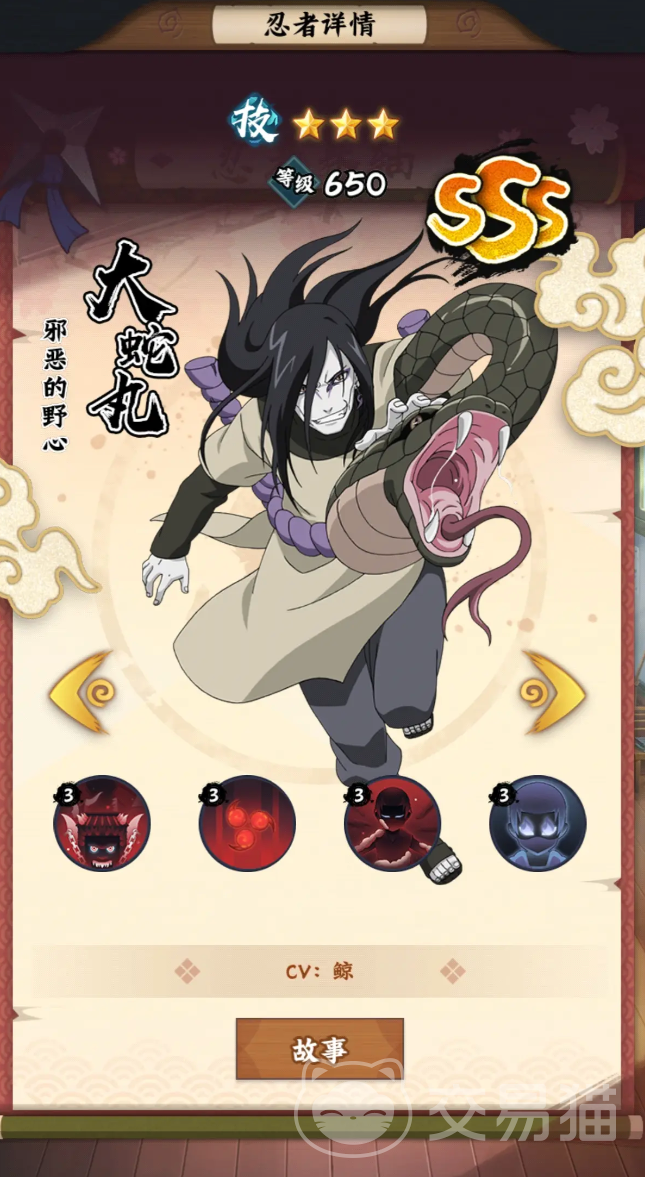 大蛇丸是一位偏向控制与反击的多机制型忍者,拥有“抵御”叠加、自我复活、咒印标记等多重效果。他在战斗中不断为敌人施加咒印,削弱其防御的同时增强自身输出,且在即将阵亡时能对咒印最多的敌人造成爆发伤害并复活,能打出极具压制感的反击效果。同时,大蛇丸具备一定的伤害吸收能力,对高爆发攻击有较强的抗性。凭借全面的抗打击和控制反杀机制,他在PVP环境中表现极为出色,适合打持久战和战术压制。