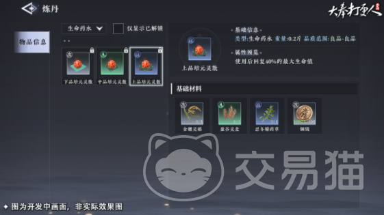 在初期玩家只能去游戏里进行探索战斗,无法进行炼丹,想要解锁炼丹这项功能,就需要先去完成主线任务的挑战,随着主线的推进可以解锁副职系统,这是游戏里比较独特的生产系统设定,在这种设定下,除了在这个大世界探索之外,玩家还可以成为制造者,能自行制造各种装备,同时炼制丹药,想要顺利炼丹,玩家就需要完成税银案,接着就可以在全新解锁的赋值生产系统里,选择丹药的炼制,每个丹药都有不同的能力,并且这些丹药除了自己使用之外,还可以选择在游戏里售卖。