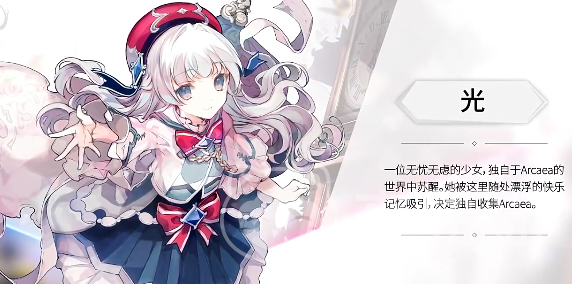故事的开端是由现实中的本体光而来,本体光是一名神性少女,不过她自己不知道自己的能量有多强,反而被其他人另眼相看,结果后续被普通人疏远,甚至当成研究对象,所以导致光变得自闭,想要逃离这一切的她许了一个愿望,希望去一个能够让自己快乐的世界,而这个世界就是Arcaea。