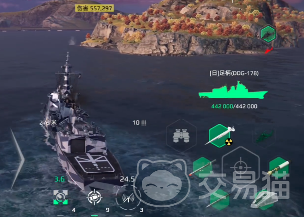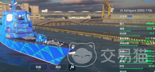 足柄号主武器为四连装导弹,火力集中且射程可观,在远距离可对敌方大型舰艇,发起攻击对战时,需留意敌方舰艇的防空火力分布,选择防空相对薄弱的角度发射,提高命中率,副武器方面,配备6枚防空导弹,搭配常规近防系统,主要用于应对敌方的空袭,当敌方战机或导弹来袭,近防系统会自动启动,防空导弹则可由玩家手动控制,优先拦截对自身威胁最大的目标,不过在20级前其导弹较易被敌方拦截,战斗中需注意导弹的发射时机与频率,避免过多导弹被拦截而浪费输出机会。