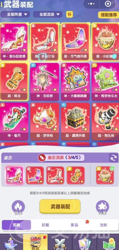 追击流派的核心武器总共有两个,首个是元气旋风镖,该武器会针对,当前目标的最大生命值百分比,进行一次伤害判定,百分比越小,伤害就越高,配合爆速回合,玩家可以触发一次范围型的aoe爆发伤害。