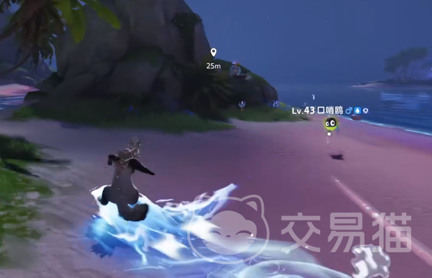 从鲸鱼骨架下来之后,玩家可以把天气修改成夜晚,然后操控角色一直向西行走,走到水边之后就可以看到一群粉色的羞羞獭,这是比较独特的夜晚形态,接着沿着这个位置继续向西,在比较靠近海边的地方,就可以找到花芽蟹和葱葱蟹的夜晚形态,然后沿着这个位置继续向南,在看到几块大石之后,玩家可以爬上去,在石头的上方会出现沙滩形态的小号欧,从石头上下来继续向南行走,可以在沙滩周围看到口哨欧,同样也是沙滩形态,想要捕捉的玩家就可以靠近战斗。