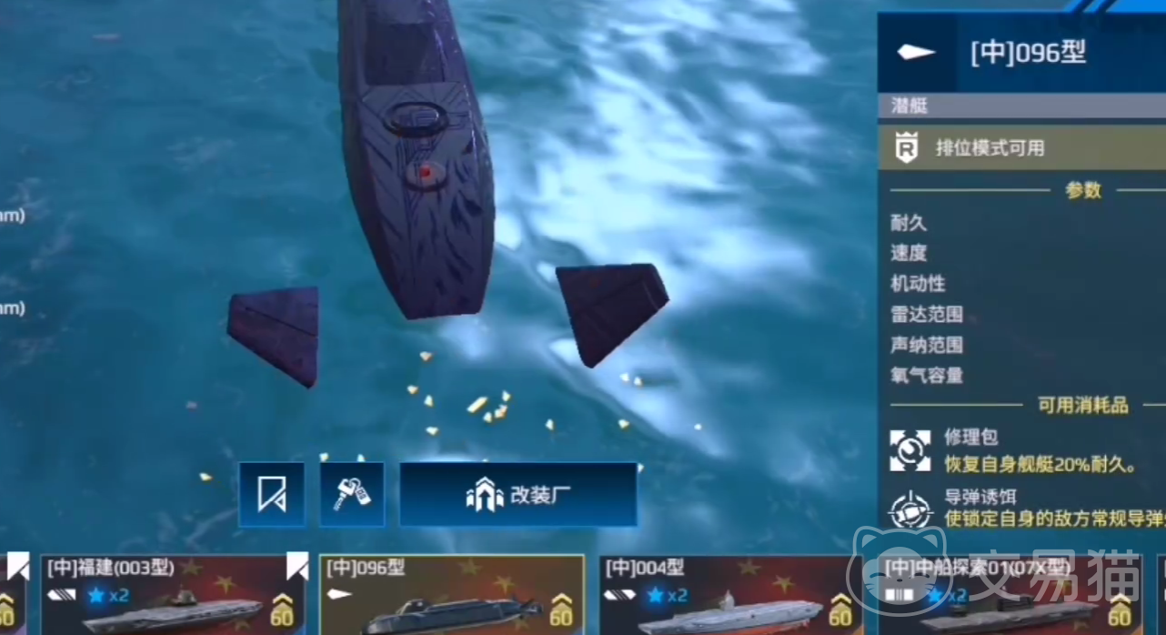 在使用096型核潜艇期间,玩家必须率先攻击大型的战舰,例如战列舰等等,随后利用深水区的优势,规避驱逐舰的声纳攻击。