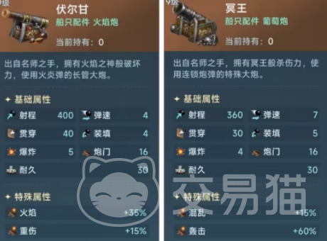 为了能有更加真实的航海体验,通过大航海时代传说,每个玩家都会驾驶船只,去各个国家进行贸易的沟通和交流,在这个过程中会遇到很多对手,想要保护船只上的货物,就需要和对手展开一场海上对战,这时候如果只使用基础的船只远远不够,还需要多增加一些船上装备,这样才能借助这些武器抵抗对手的进攻,首先比较推荐的就是装配伏尔甘这个火焰炮,这个火炮在最基础的状态下射程都可以达到400,并且在攻击的时候还能带来40点的贯穿伤害,是众多火炮里伤害中等偏上的,泰坦这个火炮也是比较推荐去使用的,这是一个2级炮,虽然射程并没有那么远,但整体的贯穿伤害比较厉害,另外还能带来一定的爆炸效果。
