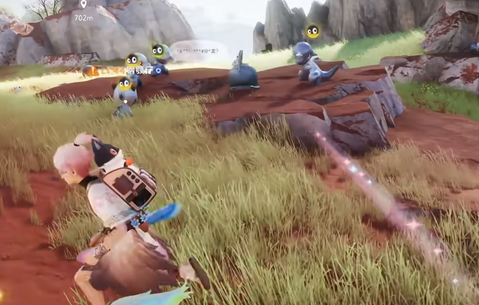 接着玩家继续向东北方向行走,可以看到山林形态的大眼盔和钢卫士,收集完成之后可以沿着当前位置继续向东,在不断下坡的过程中,可以看到左侧会出现基础形态的大眼盔和钢卫士,沿着这里继续向北,需要在贴近山崖的地方,去向西北方向行走,这里需要沿着道路爬上山坡就可以看到基础形态的银盔龙,银盔龙会在天上飞翔,时不时地落到石头上,大家可以查看一下石头上方的宠物。