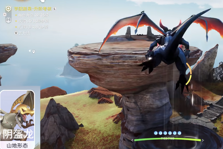 顺利收集到这些宠物之后,玩家可以通过传送点传送到地宫石中之剑,在这个传送点可以操控角色向西南方向,爬上石头之后,可以看到下面有基础形态的盔面龙和钢鄂仔,可以选择靠近收集,沿着这个位置继续向西,可以看到高地形态的花舞兰,这其实就是飘飘花的高等级形态,有需要的玩家可以去当前位置寻找收集,收集完成之后,玩家就可以通过地图上的传送点,再次回到地宫石中之剑,可以从当前位置向南探索,在这里可以收集到山地形态的阴盔龙。