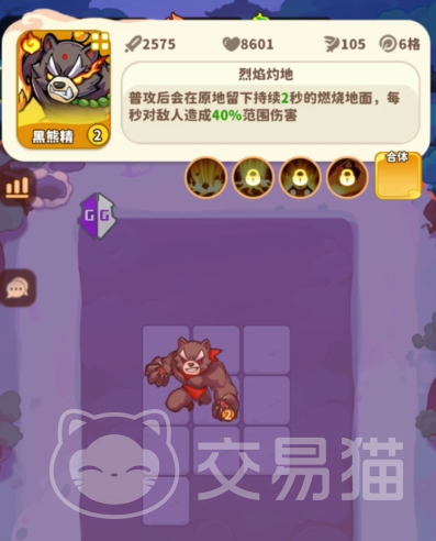 黑熊精在战斗中的输出方式较为独特,其普通攻击命中目标后会在攻击落点留下一片燃烧区域,这片区域将在一段时间内持续对范围内的敌人造成伤害,形成持续的战场威慑,这种技能机制在面对密集型的关卡布局,或是与强大的BOSS进行战斗时,能够发挥出巨大的作用,它不仅可以持续压制敌方的站位,让敌人难以自由行动,还能在这片燃烧区域内,持续制造高频次的范围输出,配合其他具备灼烧效果的魔宠,更能触发强大的伤害联动。