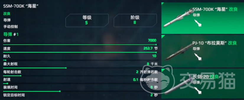 海星,水面舰艇的优选,是二级房目前很好用的导弹,超高的突防率,速度快,伤害也高,适合萌新上手。