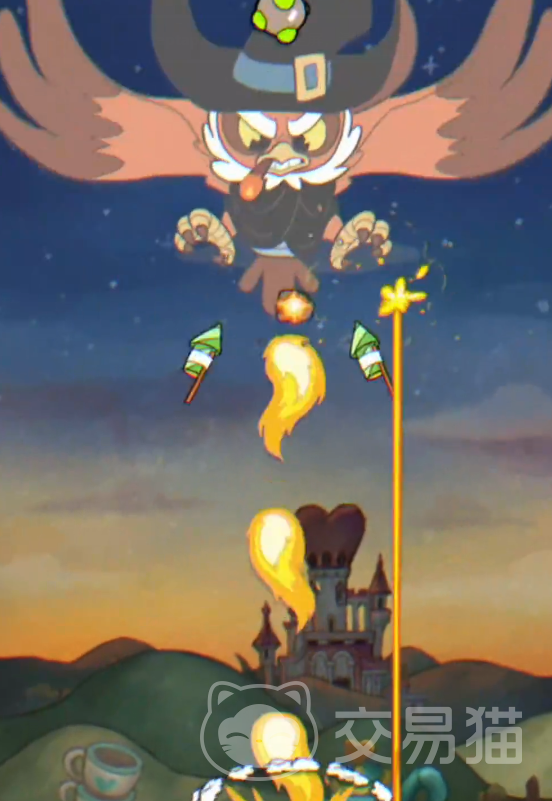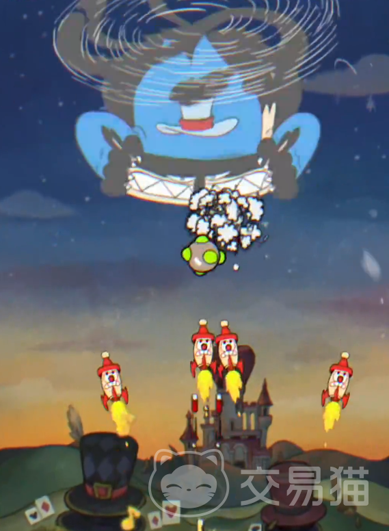 奸笑猫有3个技能,第一个技能是向着扇形区域发射弹幕,第二个技能就是它自己会化身为球来高速冲撞,我们需要进行躲避,它的第三个技能会丢出轨迹不规则的子弹,这个是比较考验我们走位的。