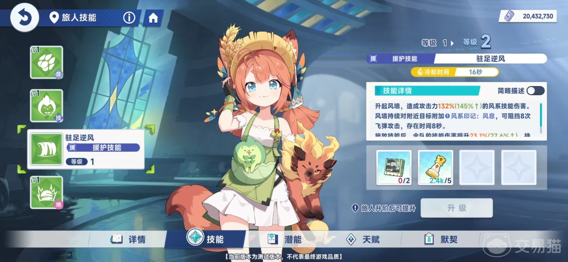 援护技能驻足逆风,升起风墙造成风系技能伤害,风墙会持续对附近的目标附加风系印记,一共能阻挡8次飞弹攻击,存在8秒钟。在技能释放之后,全队的技能伤害提升持续15秒。绝招原野之唤,将飞弹攻击清除,随后发射火球,造成大范围的风系伤害,并附加风系印记。这里简单介绍一下风系印记,这是部分风系角色对目标的额外附加状态。当此状态被特定的风系角色攻击触发时会产生特殊效果,所以杏子很适合与其他的风系角色一起搭档。
