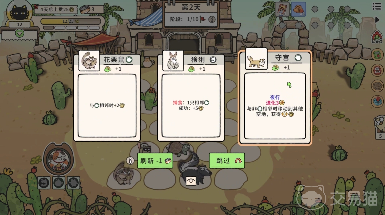 除了上述的卡牌构筑玩法,猫神牧场的策略玩法还体现在游戏的方方面面,在游戏中玩家要对资源合理把控,甚至对产生收益的小动物们白天工作还是夜晚工作都需要玩家认真思考详细安排好小动物的休息时间。除了这些,游戏还还会在游玩期间提供一些额外的功能卡,帮助玩家更好的进行决策,可以说猫神牧场将”策略“贯穿了整个游戏,并且相当合理的把”策略“做到了引起玩家的兴趣又不让玩家厌烦。