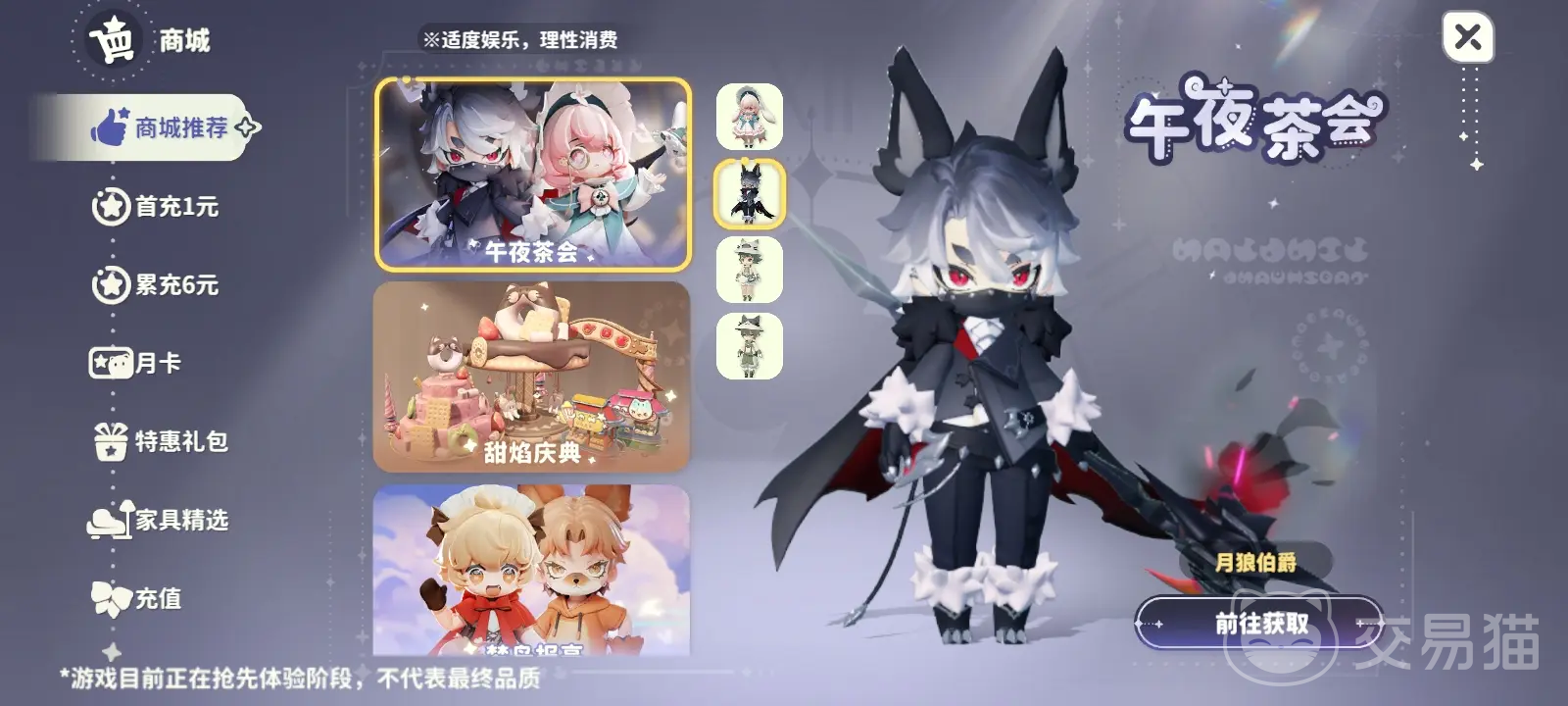 “家具精选”主要就是可购买不同价位的家具套装,如果有比较喜欢的,也可以考虑买。充值界面的氪金比较纯粹,各种价位,能直接获得对应数量的梦想水晶;最后一个氪金项目就是卡池抽取想要的套装。
