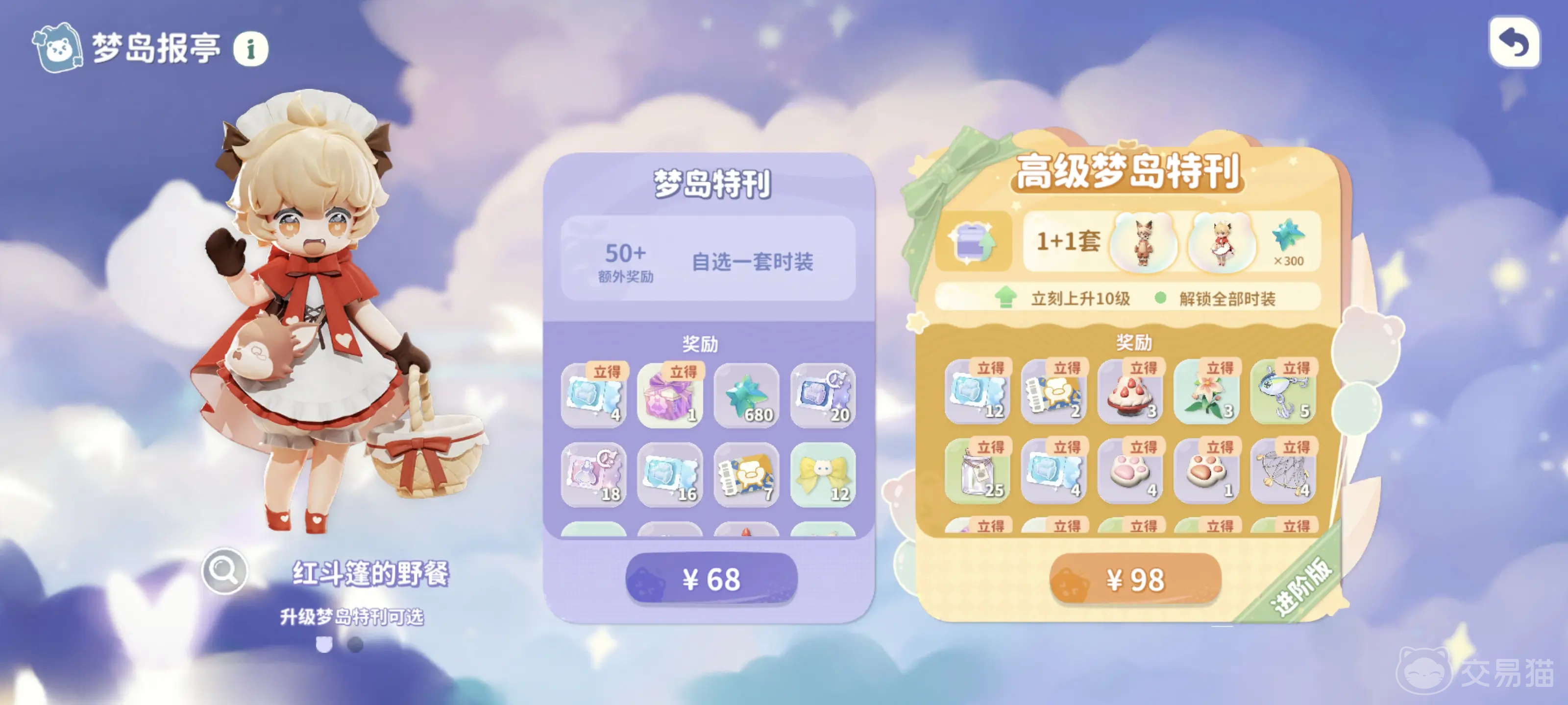 首先是首充,首充1元,就能获得“梦岛旅行箱”载具,这个旅行箱上还有小狗狗图案,整体非常可爱,而且这个首充,并不止能拿到旅行箱,第二天可以获得家具券,第三天可领取头像,这个首充的性价比也是相当高了,有氪金想法的朋友,强烈推荐该氪金点。