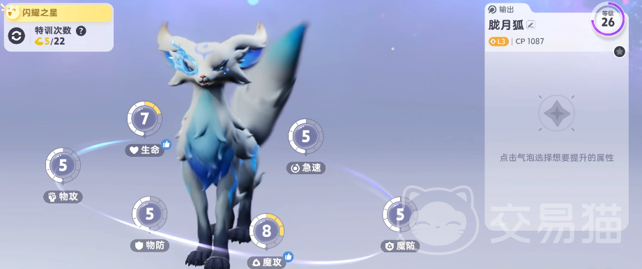 胧月狐开局就送,个体值固定为五项全满,达到18级完成朝村花任务就可以进化,获得特殊强化技,作为光属性它能够克制蓬蓬羊、大号鸥和星魔师三个boss,非常适合作为前期的主要C位培养,能帮助顺利通过前期战斗。