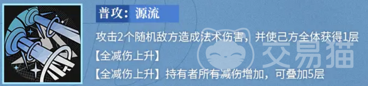 EVA的普攻技能“源流”非常实用,能够攻击两个随机敌人并造成法术伤害。最关键的是,她还会为队友们增加一层“全减伤上升”状态。这意味着,EVA不仅能给敌人带来伤害,还能有效提升队友的防御能力,这对于高强度战斗是非常重要的。更妙的是,这个减伤效果可以叠加五层,让队友们的生存能力得到了极大的保障。