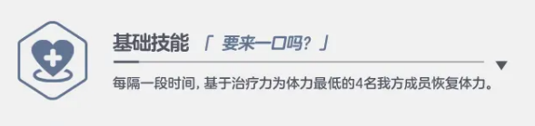 首先,时雨的被动技能「四叠半的温暖」,让她成为队伍中的坚实后盾。治疗力增加的效果,让她的治疗能力更加出色,不管是持续治疗还是紧急恢复,她都能为队友提供源源不断的支持。而「广要来一口吗?」这一技能,能在一段时间内恢复队伍中体力最低的四名成员的血量,别看这技能不起眼,实际上在长时间的战斗中,时雨的这个技能可以为队伍带来巨大的生存空间,尤其是那些血量一直处于危险边缘的角色。