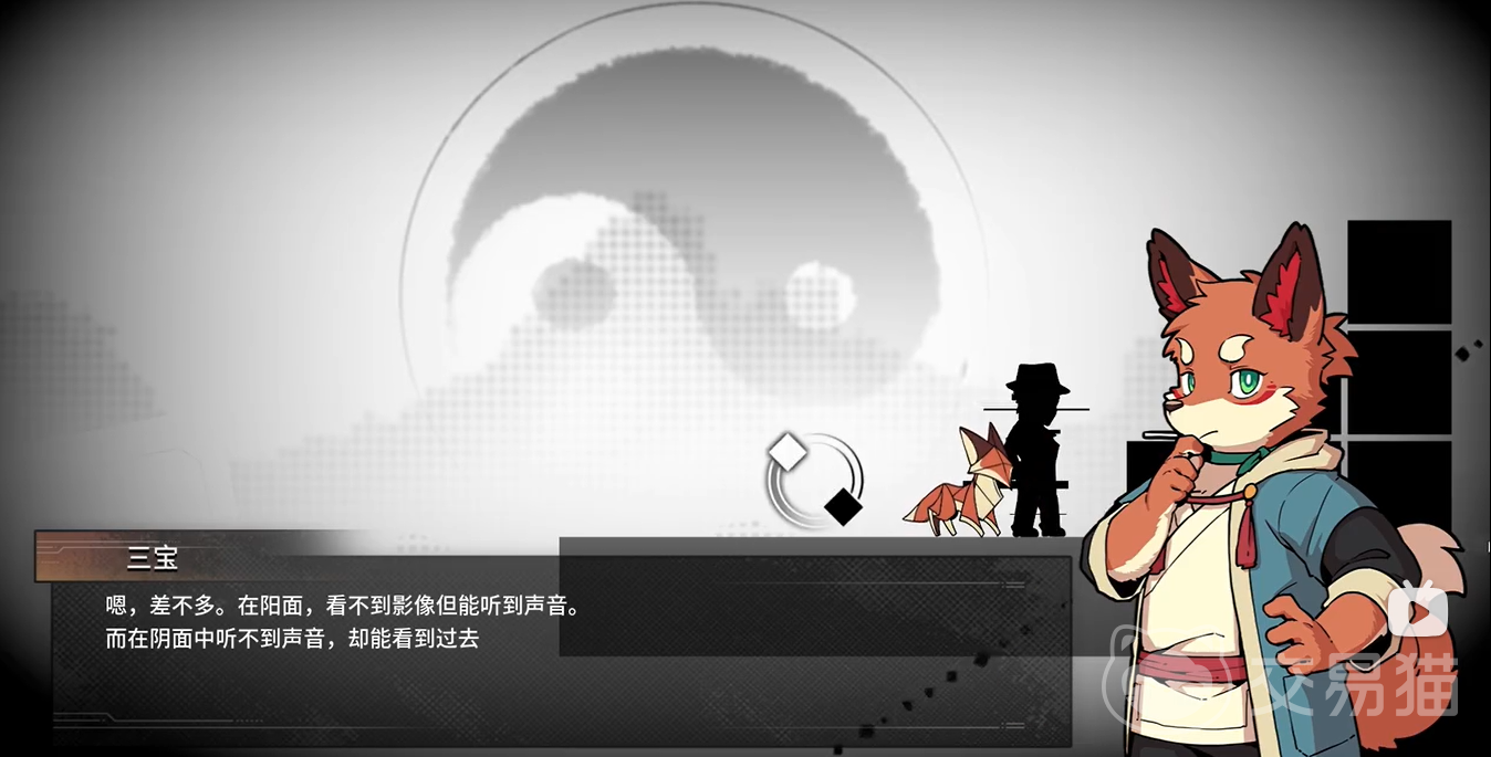 在顶方块这个环节中加入了人物之间的对话环节,使得游戏的剧情展开显得更加具有推理性,挑战性,在这个方块阵中穿梭时还会出现陈长生的身影,这也给任务的挑战带来了很多关键的信息,触发了多个角色之间的联系以及故事线的发展方向。而且在本章节中设置了多个顶方块的剧情线,他每一次完成顶方块任务时,小狐狸所需要获得的信息内容也是有目的的,需要完成章节所设置的所有主线剧情和收集任务才能够从中获取所需要的东西,而顶方块挑战过程中各种信息都会帮助小狐狸找到自己想要的答案。每一次跳跃时将会触发阴阳阵的变化,这是这个环节中较为独特的地方,画面以黑白为主,不同的画风切换营造了视觉上的新鲜感。关卡的挑战充分展示了玩家的游戏策略,总体来说是非常具有挑战性的。