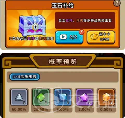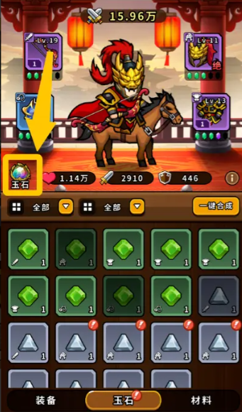 玉石的合成相对比较简单,普通到传说品质的玉石,只需要通过商城的宝箱抽奖就可以获取。每10次抽奖就可以获得史诗级别或者传说级别的玉石,每天观看视频,还可以获得两次免费抽奖的机会。5个相同品质相同部位的玉石,在经过合成之后就可以获得高一级品质的玉石,新玉石的增益效果随机,还需要结合玩家的实际运气。神话品质的玉石没有办法通过宝箱获取,只能够通过传说品质的玉石合成。