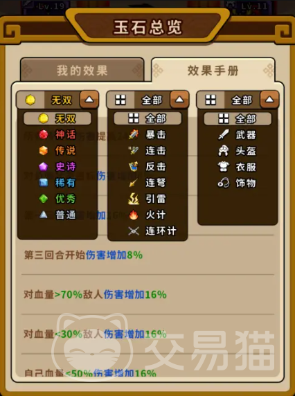 帝国史诗玉石所拥有的作用还是比较多的,会包含多个角度,覆盖攻击,还有生命等多个方面。传说以及品质以上的玉石还可以直接通过金刚石洗炼转换效果。不同品质消耗的金刚石数量也会有所区别,例如神话是5颗,无双是15颗,还有一颗传说。各个品质还有各个部位的玉石效果数量是完全不一样的。相同品质的玉石就没有什么明显的强弱问题,需要结合装备的效果去搭配。例如青龙偃月刀本身就有15%的暴击率,如果搭配有暴击伤害的玉石就可以增强收割能力。