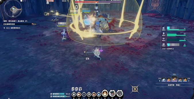 那Boss该怎么打呢?在剑盾护盾的阶段,小伙伴们需要迅速反应,分散到战斗场的边缘地区,之后先杀两个剑盾哥布林之后,让坦克和奶妈各捡一个盾,用于应对弹射能量球机制。之后boss在锁定带盾目标之后会生成屏障,然后让两名有盾的玩家和boss的站位形成三角形即可,最后通过引导能量球反弹到boss的身上触发虚弱。