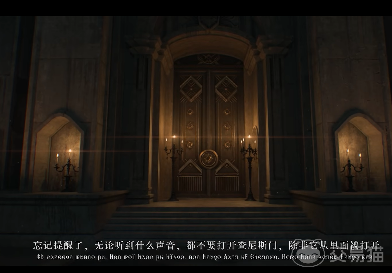 所谓的查尼斯门,就是小编在图片当中展示出来的门了。在原著中,这个门上有着7个黑夜教会的勋章,如图中所示,这类的细节得到了非常良好的制作,绝对能让原著党体会到真实的还原度。那么,这个查尼斯门究竟是什么东西呢?它其实是主角在剧情前期遇到的存在,下面小编就介绍一下它。