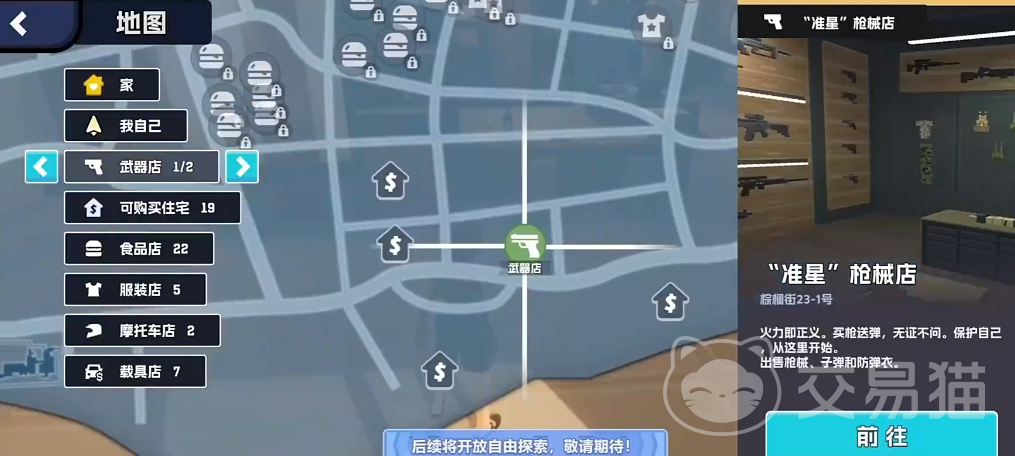 想要达成0元购的话还需要准备两个道具,分别是【电锯】和【面具】,根据任务指引在工地拿到电锯(小心避开工地上的工人),在街心公园贩卖机上获得面具,接下来玩家们可以肆意前往地图上各大商城和银行,获得大量的货币、载具、珠宝钻石等,这些有价值的道具后续可以通过武器商店来兑换成货币,用于购买各类豪宅或者是打造产业等。