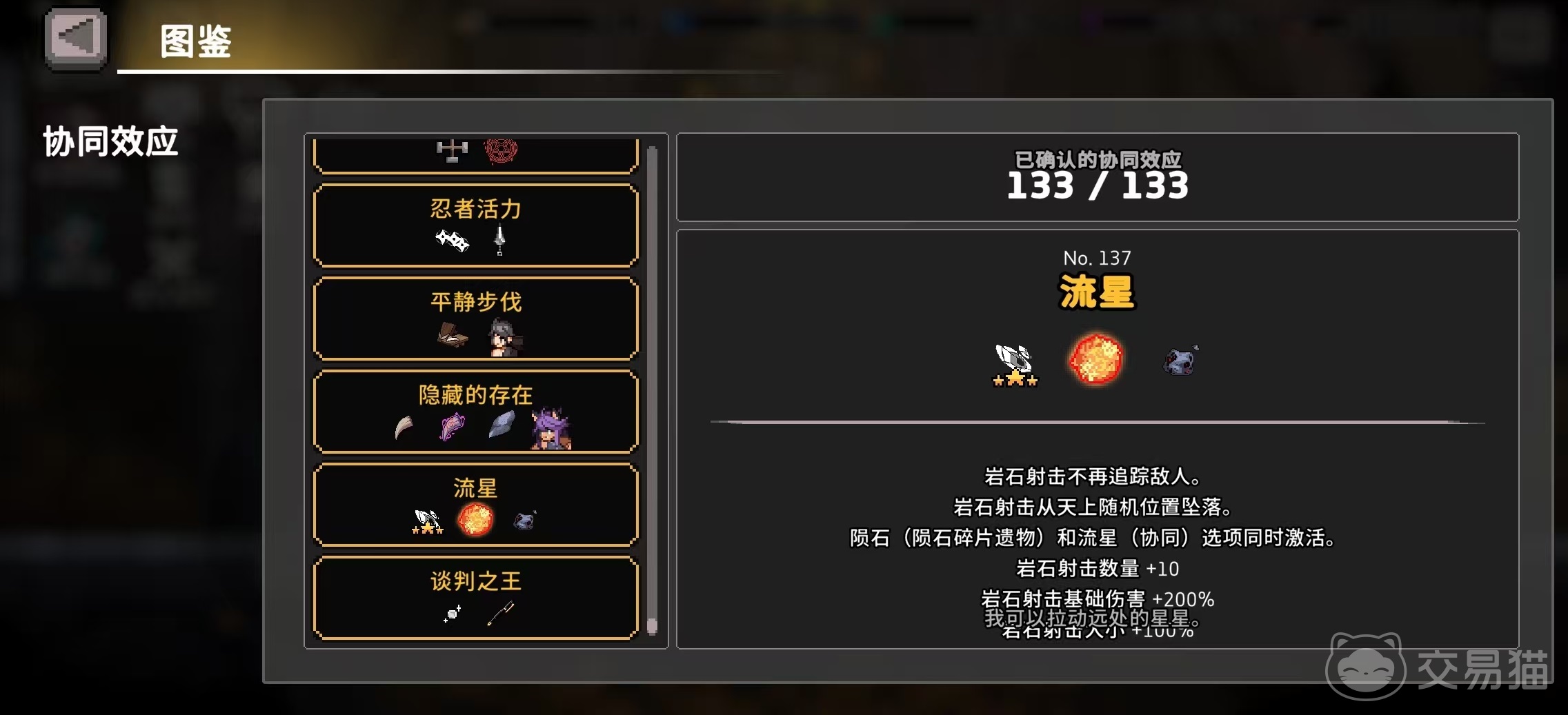 在目前的游戏中,小编推荐几个比较强势的协同流派给大家,第1种是流星协同,由技能小太阳、岩石射击、陨石碎片组成。流星协同的效果是岩石射击不再追踪敌人,而是从天上随机位置坠落陨石,和流星选项同时激活,岩石射击数量增加10,岩石射击的基础伤害提升,攻击范围也会相应的增加。简单来说,这个协同大幅度增加了岩石射击的伤害和数量,所以只要是能够使用岩石射击这个技能的角色,都可以进行搭配。不推荐的是浪人和猎人,这两个尽量不要使用。