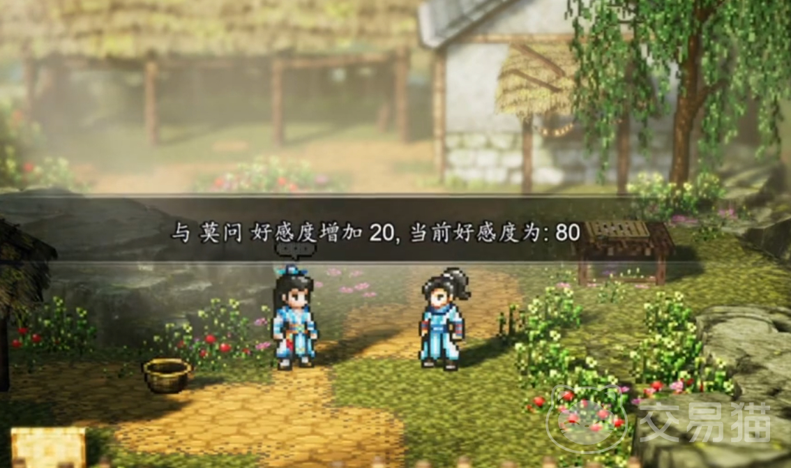 虽然是临时入队的队友,但是莫问在剧情方面占据的篇幅非常大,而且还和后续的结局相关。在剧情中,主角和莫问一起经历诸多事件,随着剧情深入,莫问真正的身世也会浮出水面。后续黑化之后的莫问成为主角的劲敌。在整个剧情中会有多处能够提升与莫问的好感度。首先是在一开始加入武当派之后,完成门派任务可以增加30点好感度。然后在清河村的山贼紧急任务中,完成主线后可提升10点。主线再赴平康结束后,触发一段月下习剑剧情,在剧情结束之后提升20点好感度。在给莫问找礼物的支线中得知莫问喜欢棋,然后通过下棋赢得相关道具,将棋赠送给莫问之后好感度加20点。最后是在品剑大会结束之后,邀请莫问一起赴关外,选择赞同他,可以再增加10点好感度。
