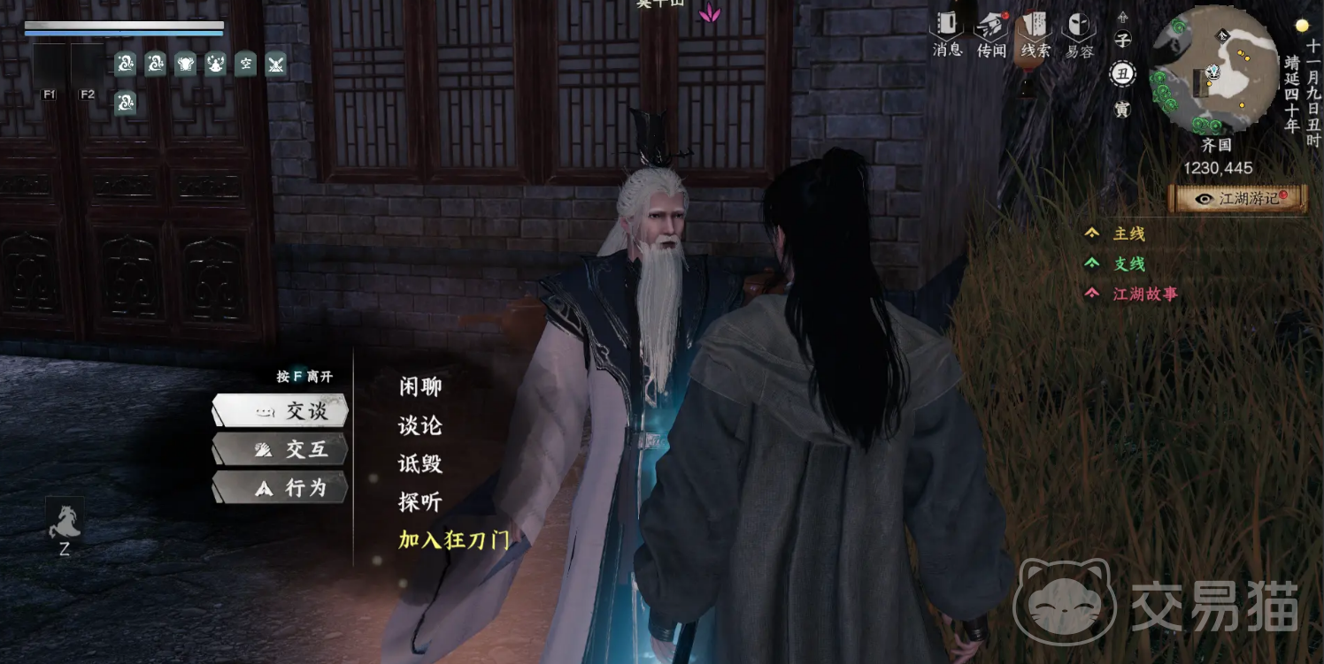 绝剑门与狂刀门各自为剑与刀之巅。绝剑门需要先完成下山村民的弟子救援任务获得推荐信,才能进入1364,624与云婧对话加入。晋升路线依靠好感度+剑术+道学要求层层递进,成为掌门后可掌握地级剑法【叁霸剑】。狂刀门的入门则是前往1230,445接受莫千山的试炼,完成后加入,并同样通过好感与任务逐级晋升至掌门,最终可获得地级刀法【傲寒六诀】。若完成刀剑凌云怨任务并同时担任两派掌门,可开启合并为【狂刀绝剑门】的隐藏剧情,集两派资源于一身。