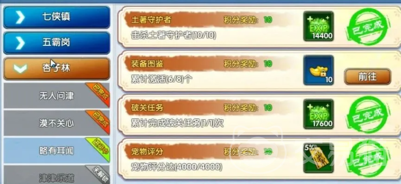 另外在1~10级玩家就需要注重于主线任务。在5级之后就可以用轻功,能节省时间,9级之后可以接取青霞镇的支线任务,可以获得一个10级一转的道具。10~17级在完成一转任务之后获得的经验就是普通主线的1.8倍,并且还可以获得。永久能增加5%经验的称号,可以迅速的提升战斗力。17级到30级就会解锁武林之路系统,在完成里面的任务之后就可以获得积分奖励,有效提升战斗力。
