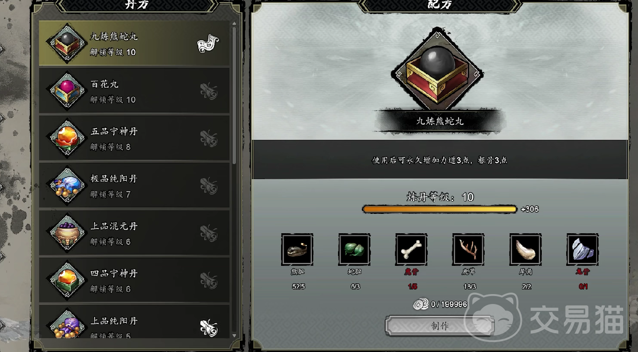 朱砂还可以进行二次锻造,获取水银,最终,玩家可以使用铅矿石锻造,获取铅锭,在取得了这三个基础材料时,玩家则可以用于制作丹药,并且可以获取高阶的武器。