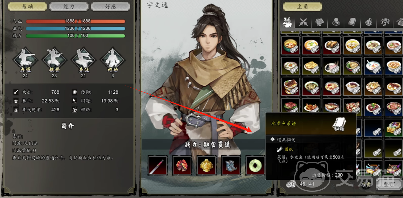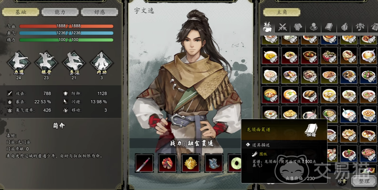 恢复类的食物道具包含有佛跳墙、水煮鱼、糖醋鱼、龙须面、松鼠鱼,玩家需要分别寻找到NPC侯酒、王军、王氏、吕侯、魏存续父子,通过获取好感度,来直接取得这些配方。